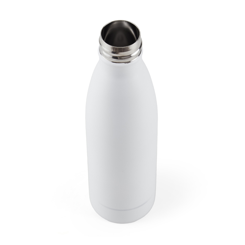 Botella reutilizable de doble pared de acero inoxidable, esmaltado en su exterior con Powder Coating. Es ideal para mantener la temperatura de la bebida: mantiene 4 horas la bebida caliente y 8 horas la bebida fría. Su tapa está confeccionada en PP, acero inoxidable y silicona para evitar derrames de líquido. Producto libre de BPA. Reutilizable.