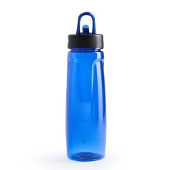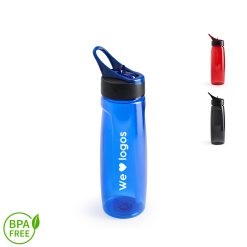 Botella de PC y PP con capacidad de 750 ml. Tapa a rosca con boquilla y con agarre, para facilitar su transporte. El producto viene en una bolsa de PLA 100% compostable. Reutilizable. Ideal para deporte o uso diario. Dimensiones: 27 x 7,2 cm.