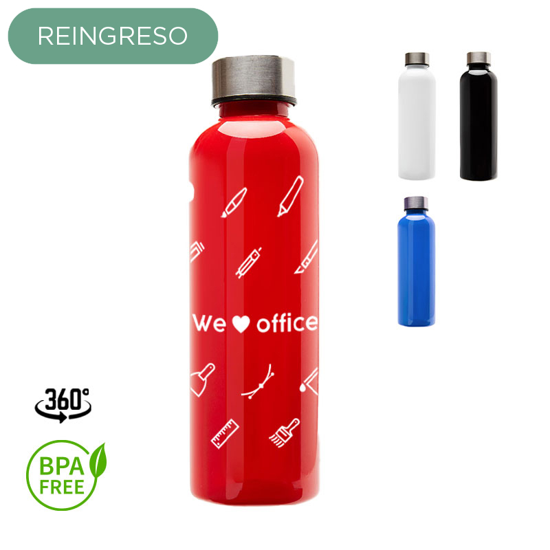 Sport Bottle de plástico AS con tapa a rosca de acero inoxidable y PP. Medidas: 21,5 cm x Diámetro 6,5 cm. Capacidad: 500 ml.