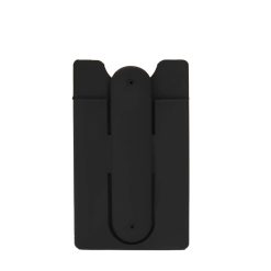 Portatarjeta de silicona adhesiva para celular. Cuenta con una soporte adaptable como apoyo. Medidas: 5,6 x 9,4 x 0,35 cm.
