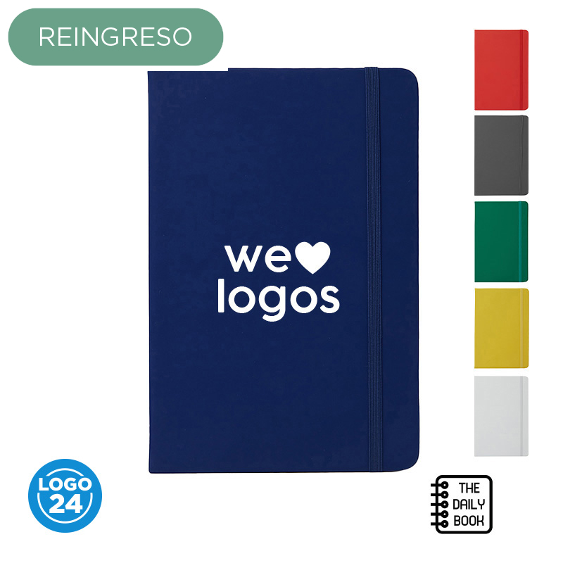 Cuaderno de tapa dura de PU con 64 hojas rayadas de 70g. Cuenta con cinta marcadora. Medidas: A5 – 21 x 14 cm. Daily Book. LOGO24: Producto disponible para el servicio de logueo en 24 horas respetando unidades mínimas de logueo y 200 unidades máximas. Consultar términos y condiciones del servicio
