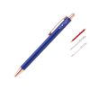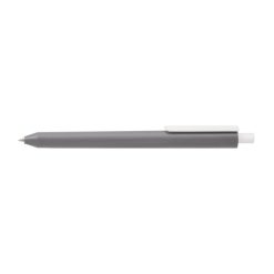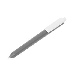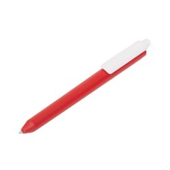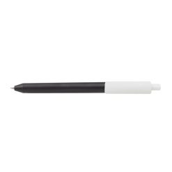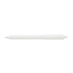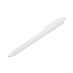 Lápiz confeccionado en ABS, con clip en color blanco. Apertura con pulsador retractil. Tinta azul.