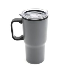 Mug térmico con mango, realizado en acero inoxidable en su exterior, y polipropileno de color negro en su interior. Cuenta con tapa transparente cristal clear con cierre. Incluye base antideslizante. Producto libre de BPA. Interior realizado en plástico. para el contacto con alimentos. Medidas: 17,5 cm x 8.7 cm. Capacidad: 600 ml. LOGO24: Producto disponible para el servicio de logueo en 24 horas respetando unidades mínimas de logueo y 200 unidades máximas. Consultar términos y condiciones del servicio