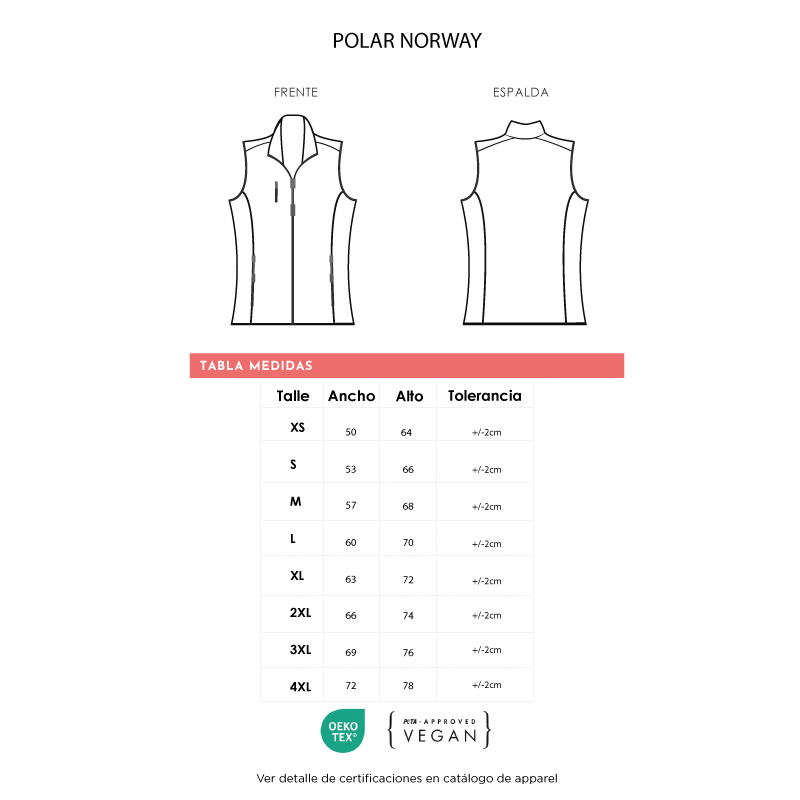 Fabricado en polar de alta calidad de 320g, con tratamiento antipilling que mantiene por más tiempo el aspecto original de la prenda, evitando la formación de imperfecciones. 100% poliéster. El chaleco esta confeccionado en un corte clásico. El mismo cuenta con tres bolsillos con cierre, dos laterales inferiores y uno lateral derecho superior. La confección es una de las características de esta prenda, utilizando tapa costuras y detalles en sus terminaciones tanto exterior como interior. En el extremo superior del cierre, posee una solapa cobertora, con cuello alzado que proporciona protección y comodidad. Recomendaciones de uso para cuidar tu abrigo: Lavar a máquina a 30°. No lavar en seco. No Blanquear. No planchar. No secar en máquina. El chaleco se entrega en bolsa individual. Sol’s. LOGO24: Producto disponible para el servicio de logueo en 24 horas respetando unidades mínimas de logueo y 200 unidades máximas. Consultar términos y condiciones del servicio.